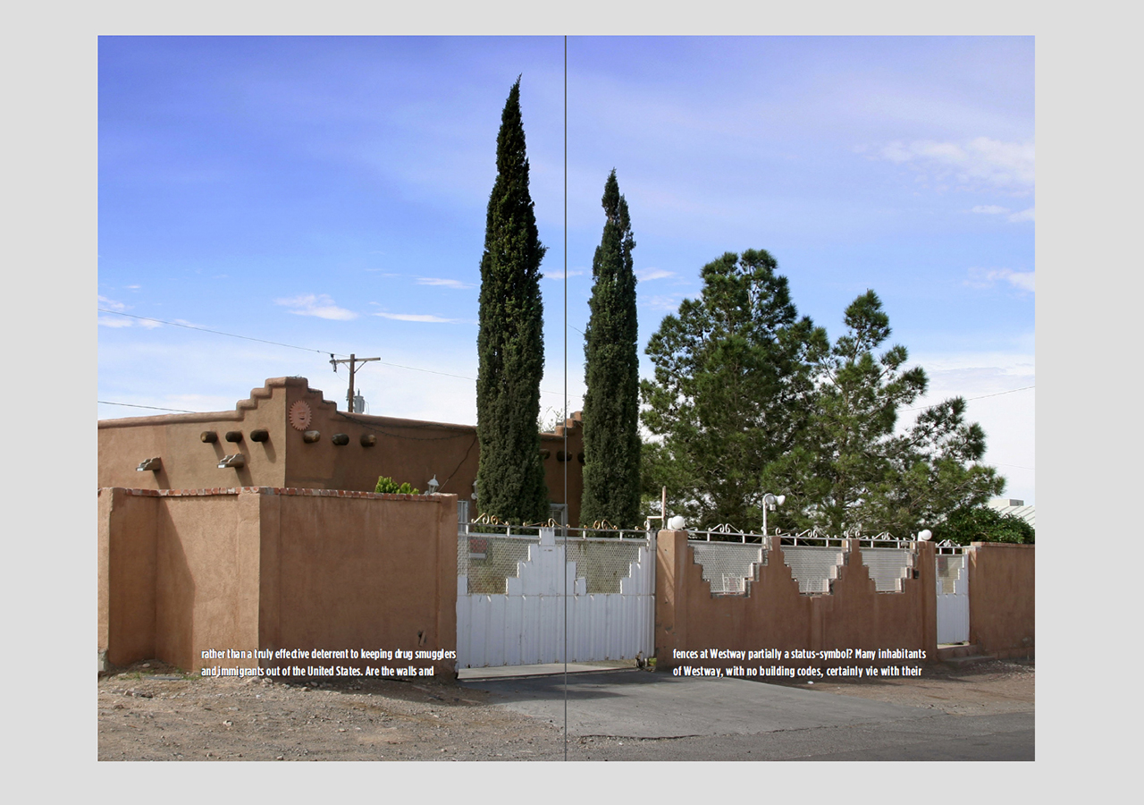 "Years ago, when I lived in New Mexico for a period of time, there was a small blue-collar town named Westway only a few miles away, across the state border in Texas. Westway is a predominantly Mexican-American residential settlement of 4,200 that grew up organically over the last twenty years around a large commercial truck-stop along I-10. It lies only about three quarters of a mile from the Rio Grande and about nine miles from the Mexican border.